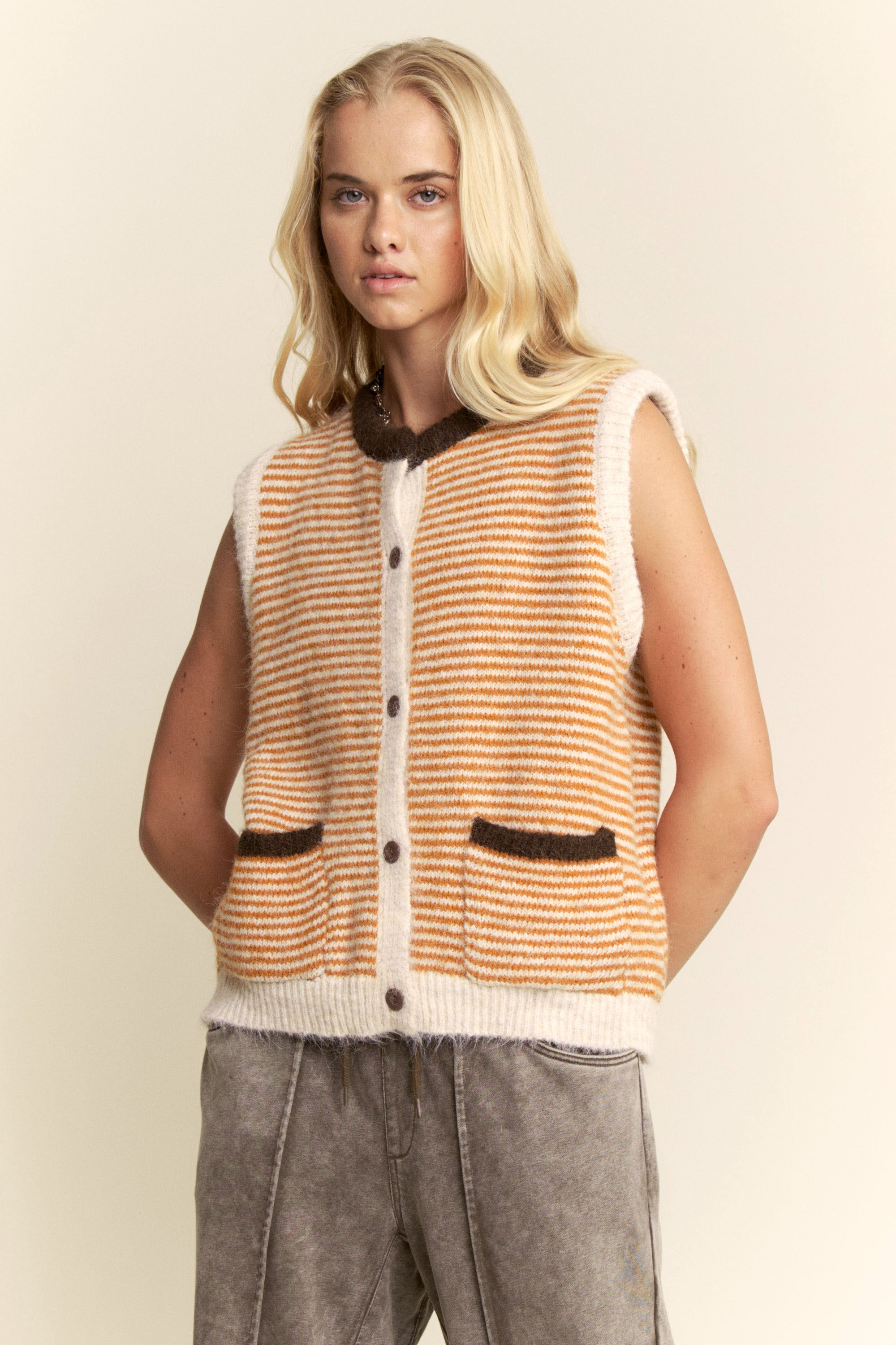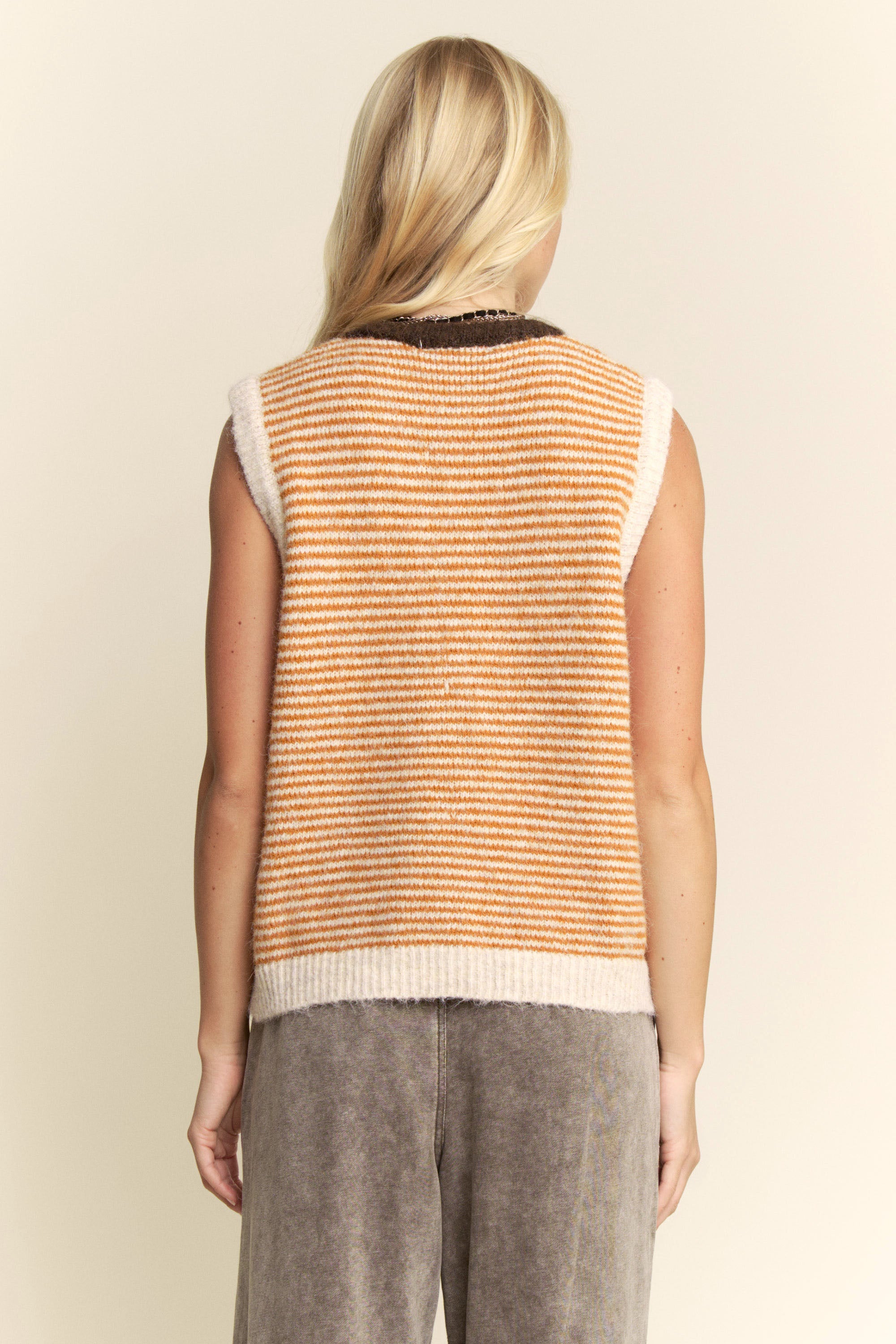 Sleeveless knit vest with stripe texture