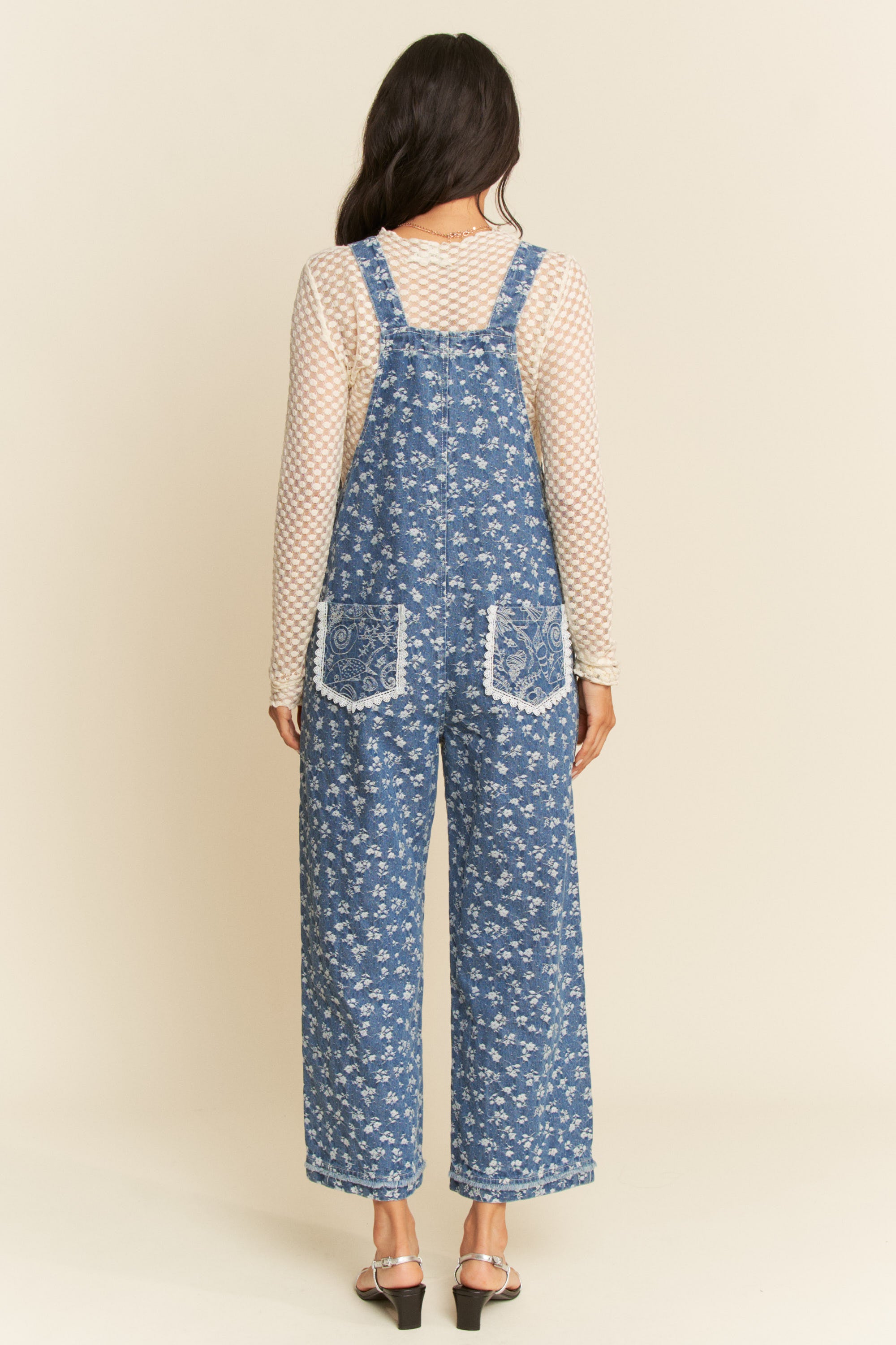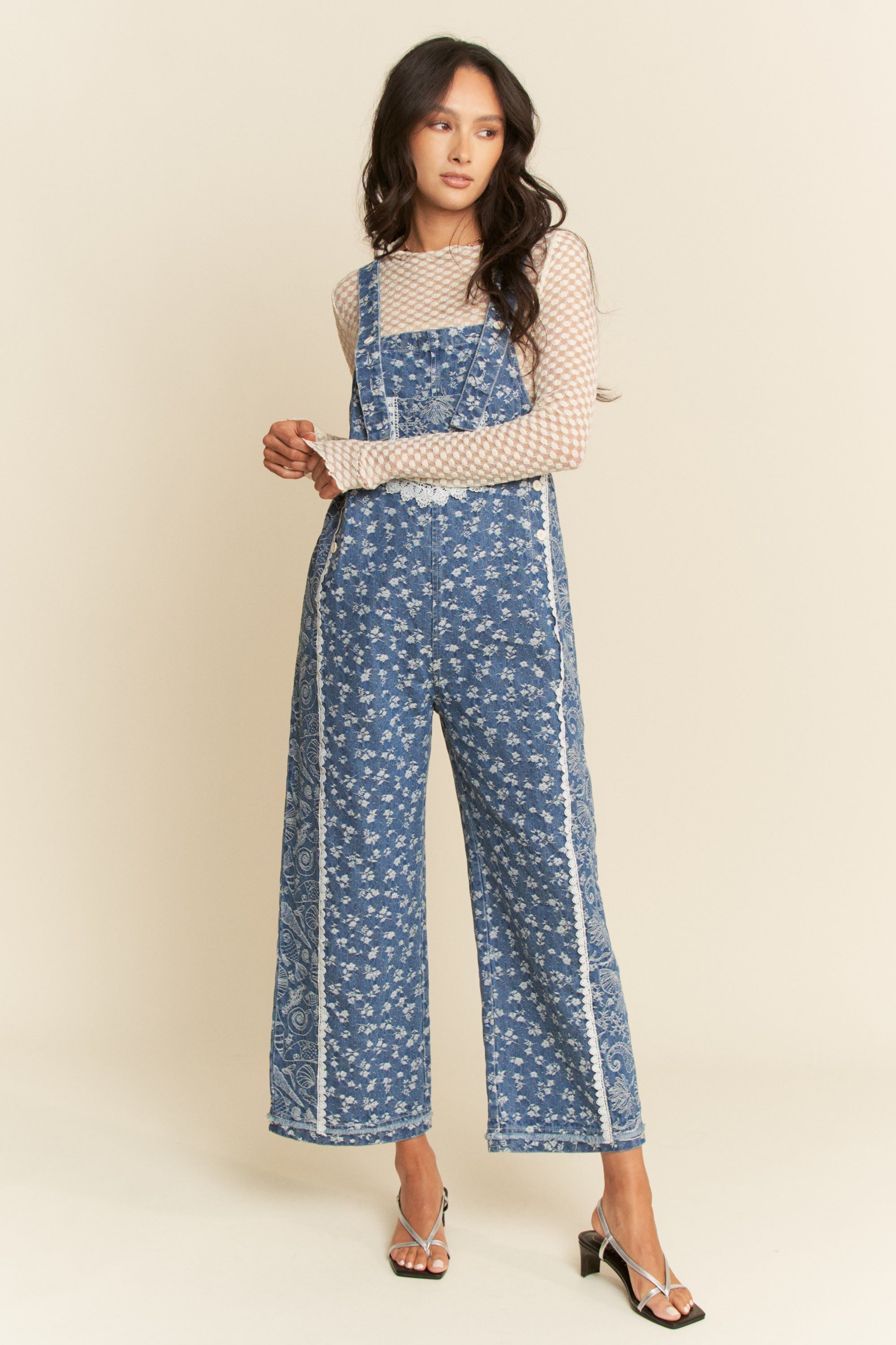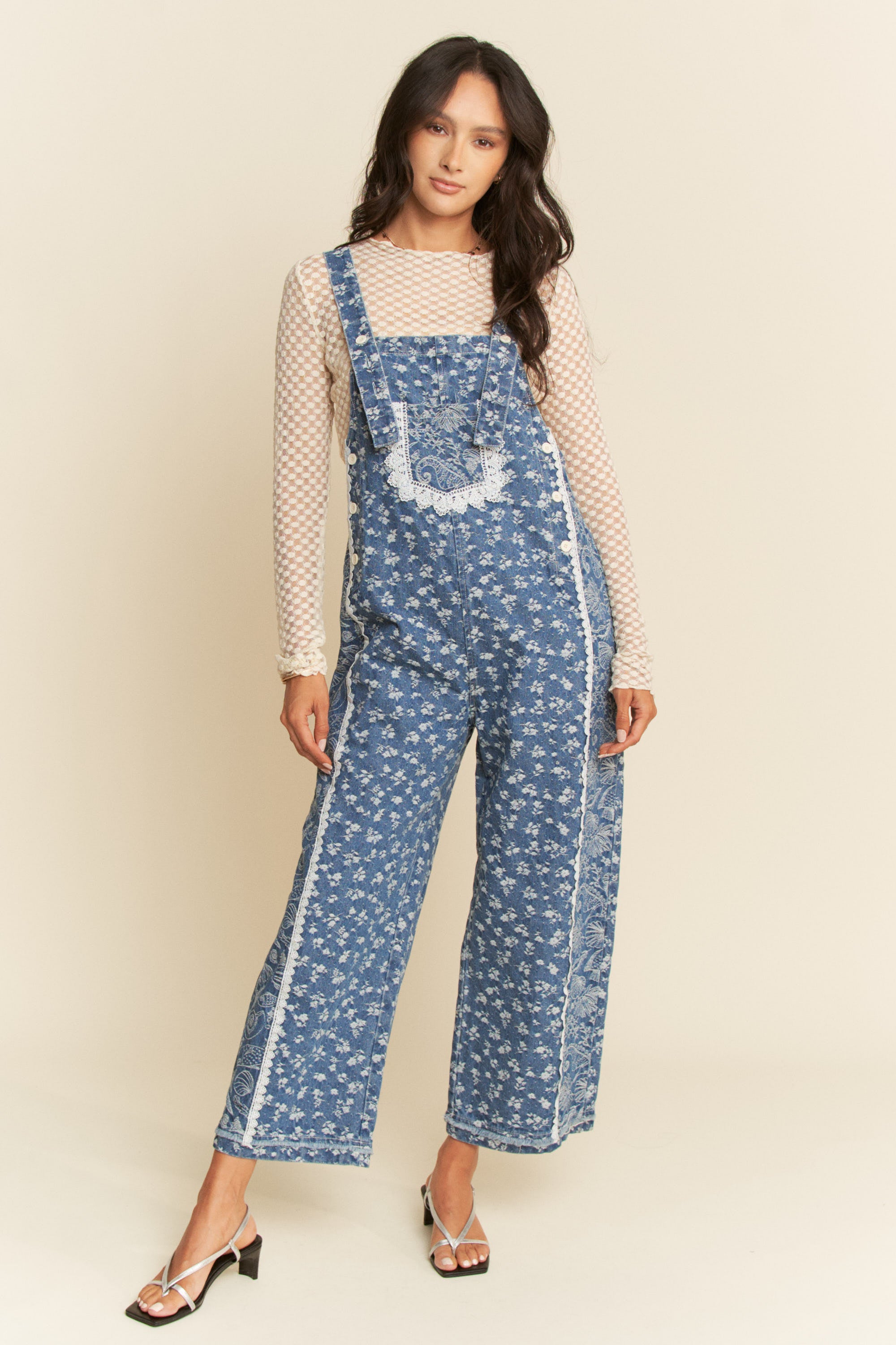 The Darwin Romper fuses utility with sweetness through an allover vintage floral print and lace-trimmed bib. Crafted in soft-washed denim, this one-piece features a relaxed wide-leg fit and adjustable shoulder straps for an easy, flattering shape. Thoughtful seaming and contrast side panels add dimension to a nostalgic silhouette.