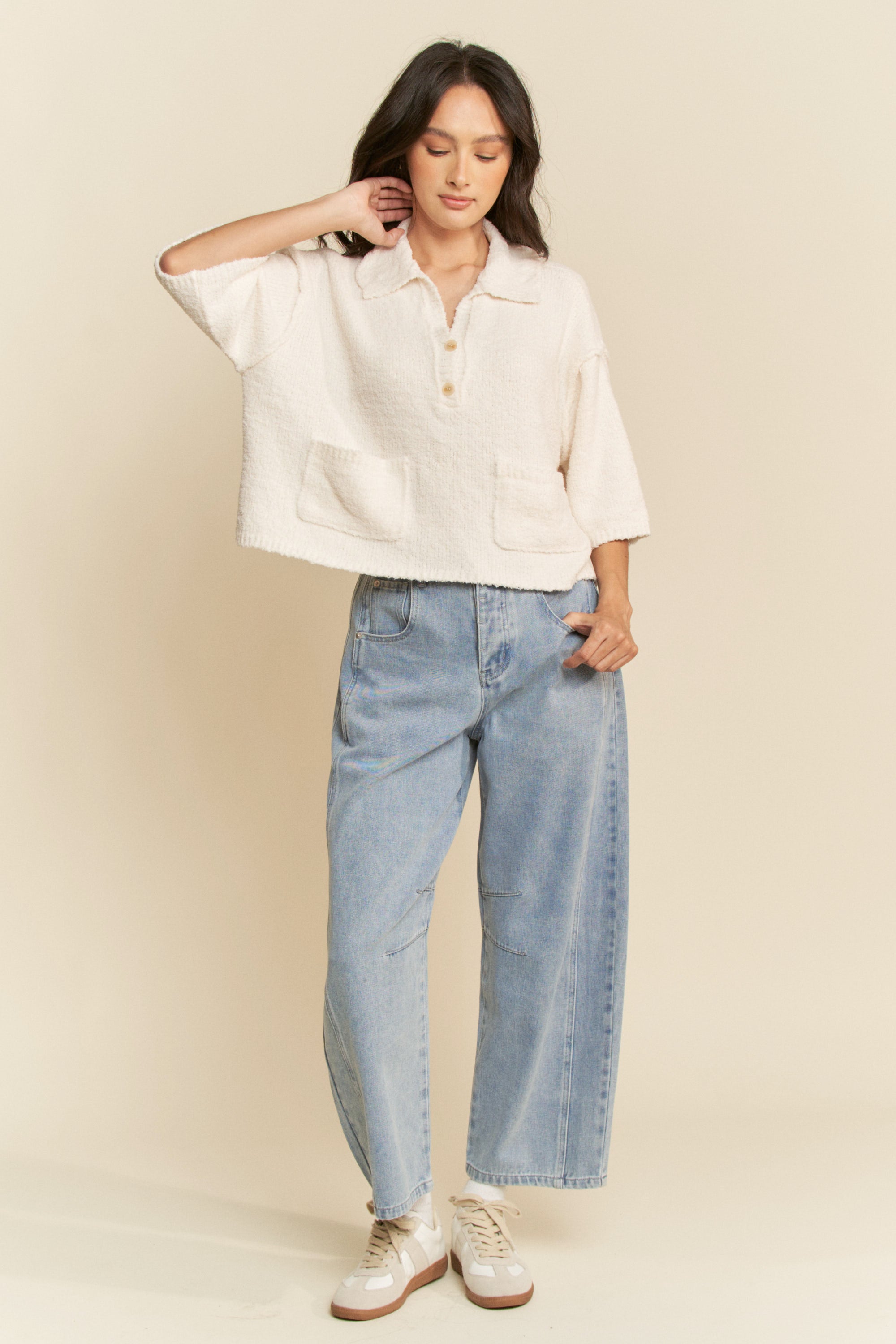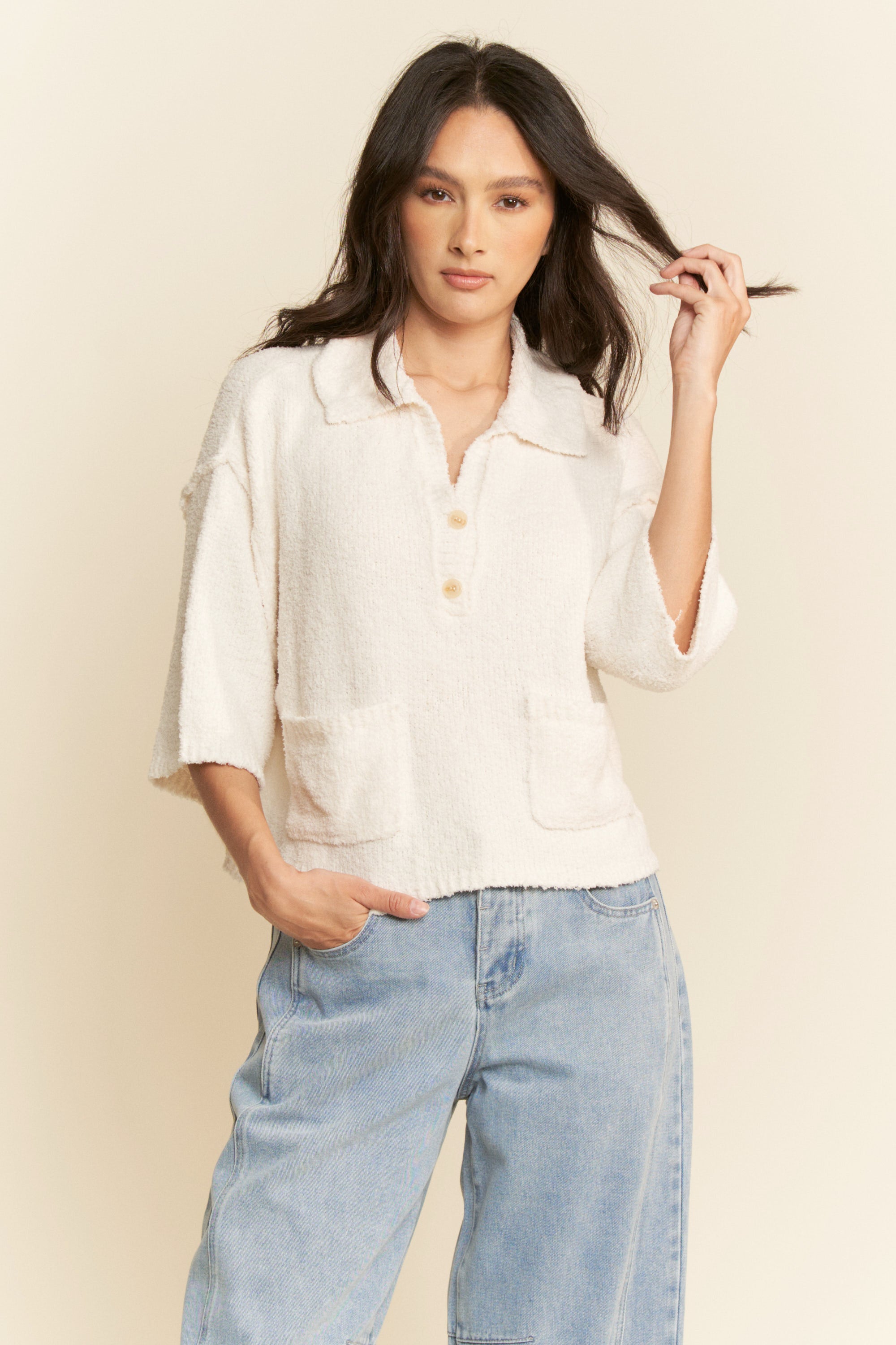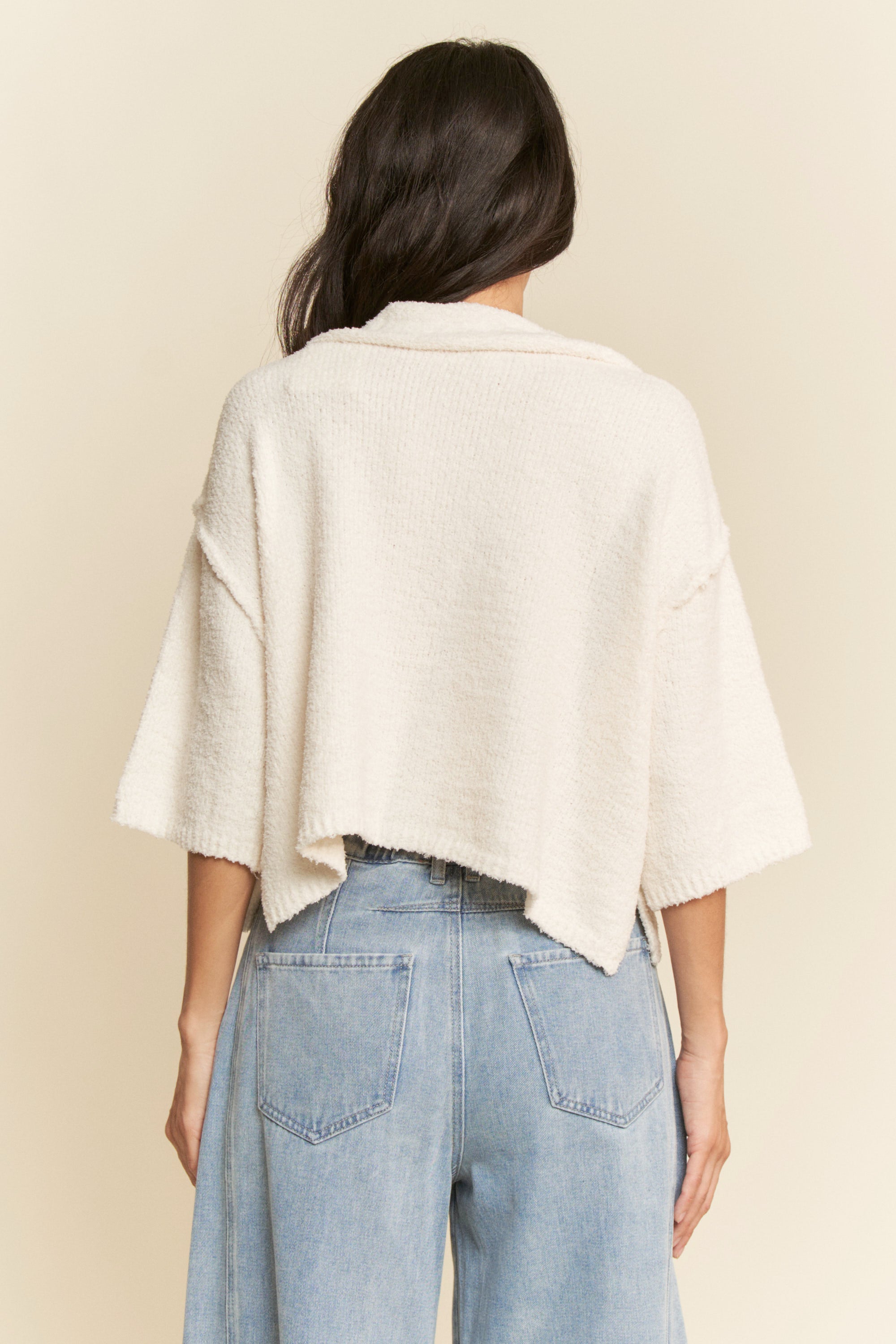 The Maison Top redefines winter layering with modern softness and sculptural volume. Crafted from a thick boucle knit in a rich pink hue, this cropped pullover brings a bold yet refined presence. With a plush texture, wide short sleeves, and a relaxed hood, it blends cold-weather comfort with editorial charm.