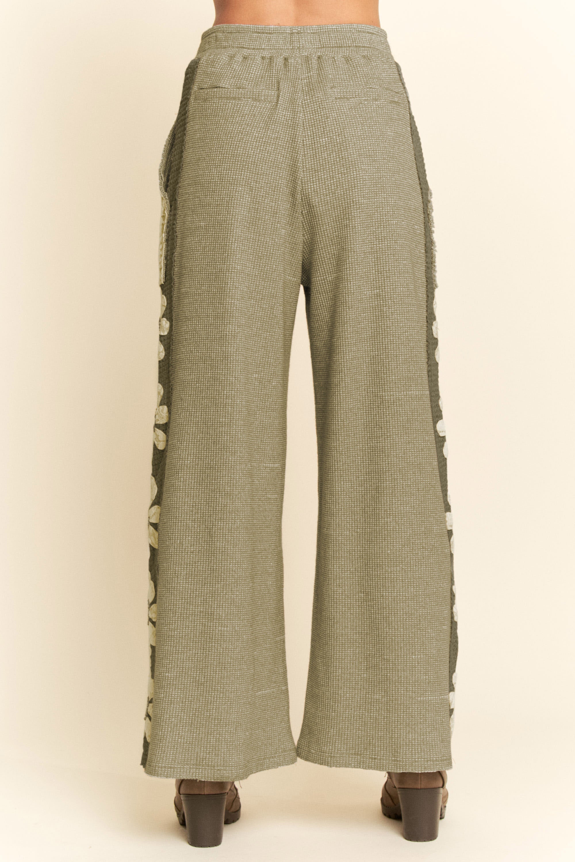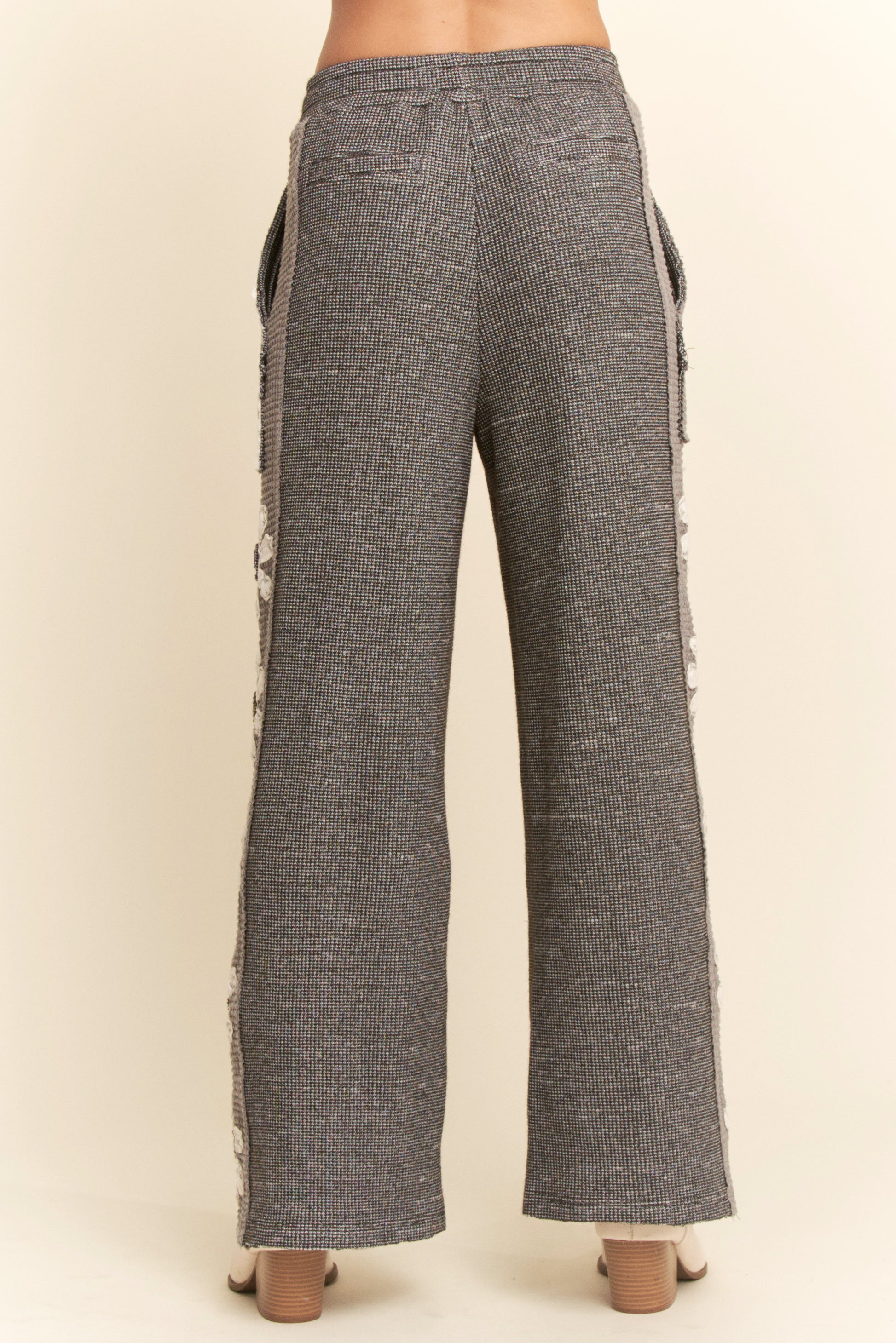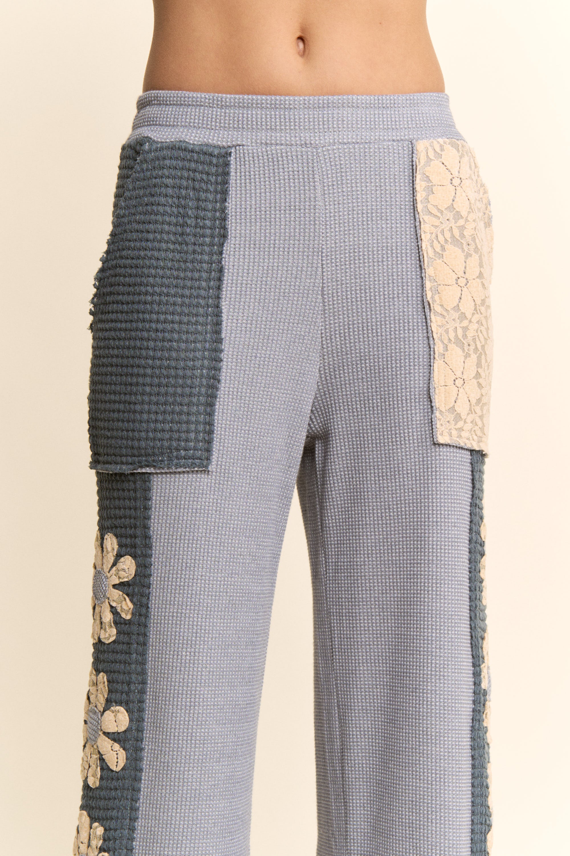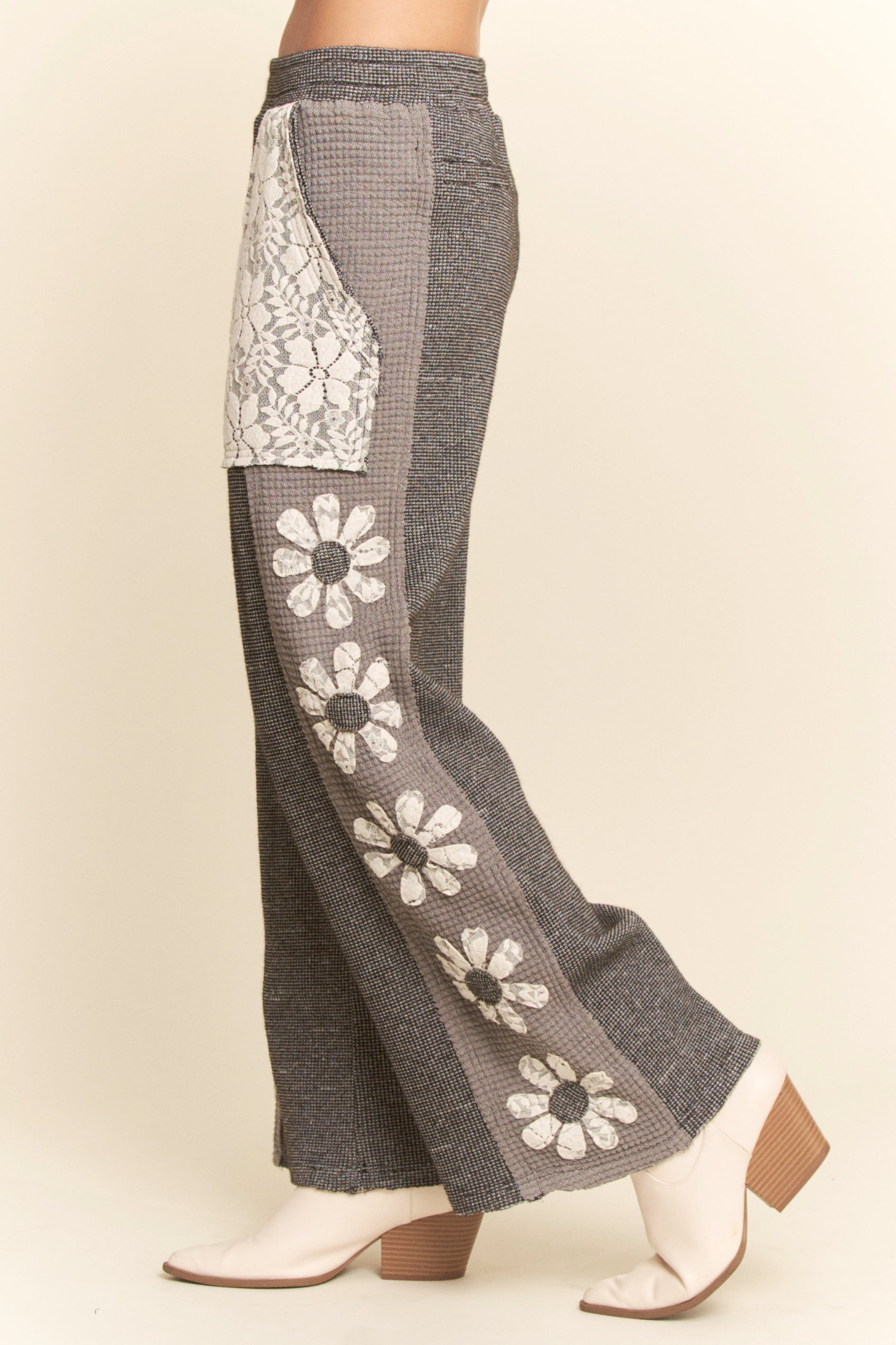 Ease into artful comfort with the Marlowe Pants—a thoughtfully detailed statement pair where textured patchwork meets soft floral contrast. Designed with a relaxed wide-leg silhouette, these pants blend cozy dimension with handcrafted charm for a look that feels both grounded and elevated.
