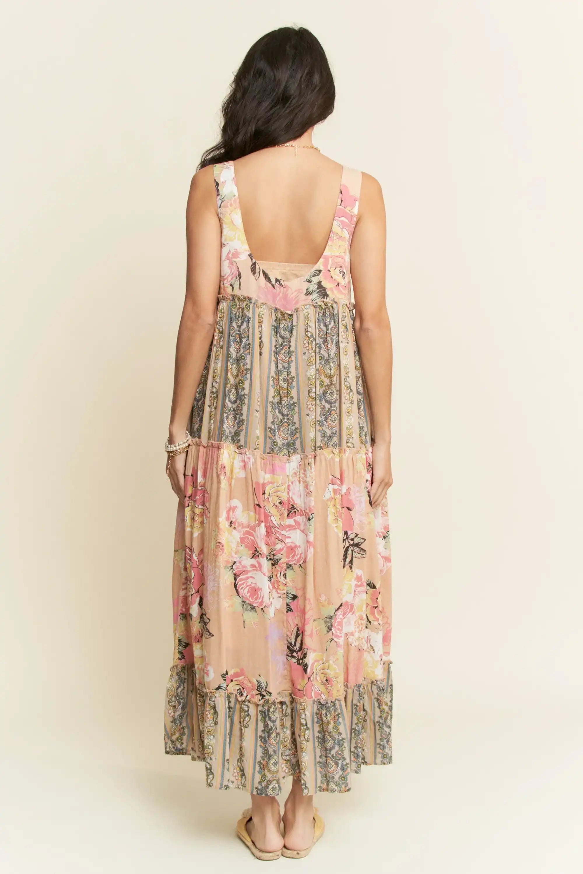 Sleeveless Tiered Floral Maxi Dress – Vintage Boho Patchwork Style